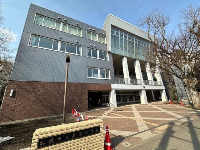 物件から東へ徒歩2分。1928年に開校した桑園小学校があります。周辺のマンション開発に伴い生徒数は900名以上の大規模校です。札幌市中央区では2番目に生徒数の多い学校になります。桑園小学校の校舎にはレンガ調の資材が利用されていて、ル・ノール桑園公園のエントランスはオマージュした造りとなっています。道路を挟んだ南側には桑園公園があります。6,613㎡の敷地には複合遊具や多目的広場、散策路など子供から大人まで多くの住民の憩いの場となっています。